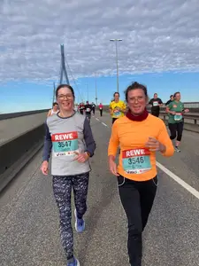 Die Sonne funkelte über Hamburg, während unsere ersten Läuferinnen im Startblock bereits mit den Hufen scharrten. Punkt neun Uhr fiel der erste Startschuss von dreien für den beliebten Köhlbrandbrückenlauf. Frisch und munter ging’s die Brücke hoch, dem Ausblick entgegen und der ließ sich an diesem Tag wirklich sehen. Da musste die angepeilte Zielzeit für eine Fotosession kurz pausieren. Denn egal wie oft schon über diese Brücke gelaufen wurde, der Blick über den Hafen lädt nur zu gern zum Verweilen ein. Nicht nur der alte Hase kam hier auf seine Kosten, auch unsere jüngsten Runner gingen wieder an den Start, um die Trainingsfortschritte unter Beweis zu stellen. Etwas erschöpft aber stolz wie Oskar kamen sie nach den12,3km ins Ziel und konnten gerade noch einen kleinen Plausch mit unseren nächsten Starter*innen halten, bevor auch sie in den Genuss kommen sollten. Es würde alles viel zu schnell vorbei sein, wurde ihnen noch mit auf den Weg gegeben und ja, nachdem auch der zweite Anstieg auf dem Rückweg geschafft war und die schicke Medaille schon zum Greifen nah, hatte man doch glatt vergessen, wie sehr man die Brücke eben noch verflucht hatte. Ganz dem Motto: