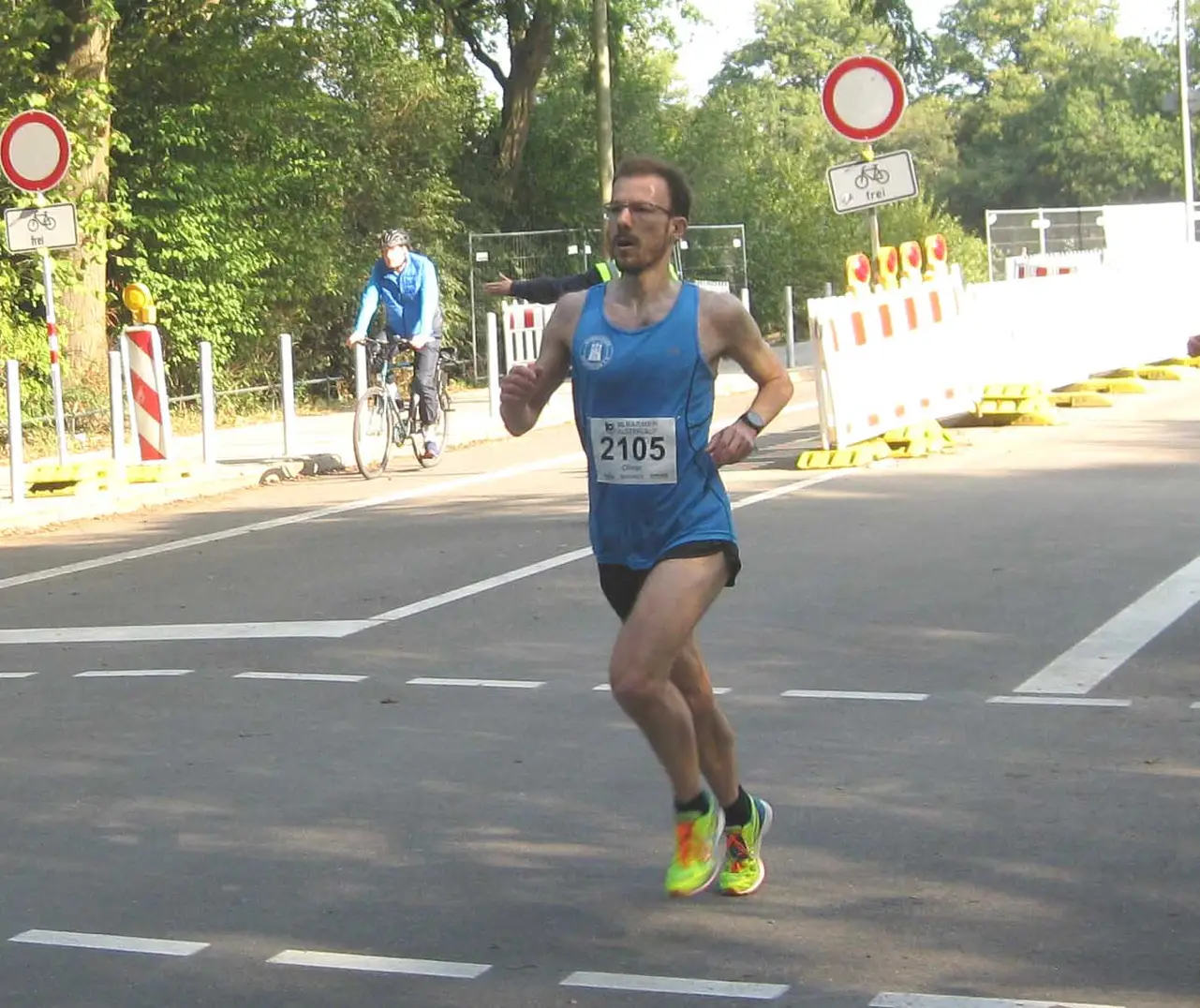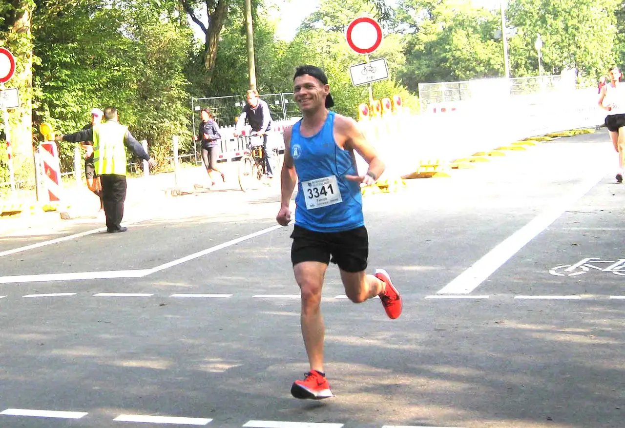 Aber zurück zum Alsterlauf: neben der Stimmung und den vielen bekannten Gesichtern sei das Wetter erwähnt. Sonne, kein Wind, nicht zu warm – es hätte nicht besser sein können. So ging auch der Lauf los. Ich kam gut rein, konnte das geplante Tempo laufen und bin zwischen Kilometer 5 und 6 noch guter Dinge an Olli vorbeigelaufen. Danach, am Westufer der Alster, ging dann aber plötzlich nichts mehr. Die Beine waren schwer und ich wurde immer langsamer. Dabei waren die Steigungen echt nur milde, wir sind ja schließlich in Hamburg. Aufgeben ist für mich allerdings keine Option. Es gibt Läuferinnen und Läufer, die den Wettkampf abbrechen, wenn sie merken, dass sie ihre Zielzeit nicht erreichen. Das kann ich mir gar nicht vorstellen. Ich bin also weitergelaufen und war eine Minute langsamer im Ziel als gehofft.
