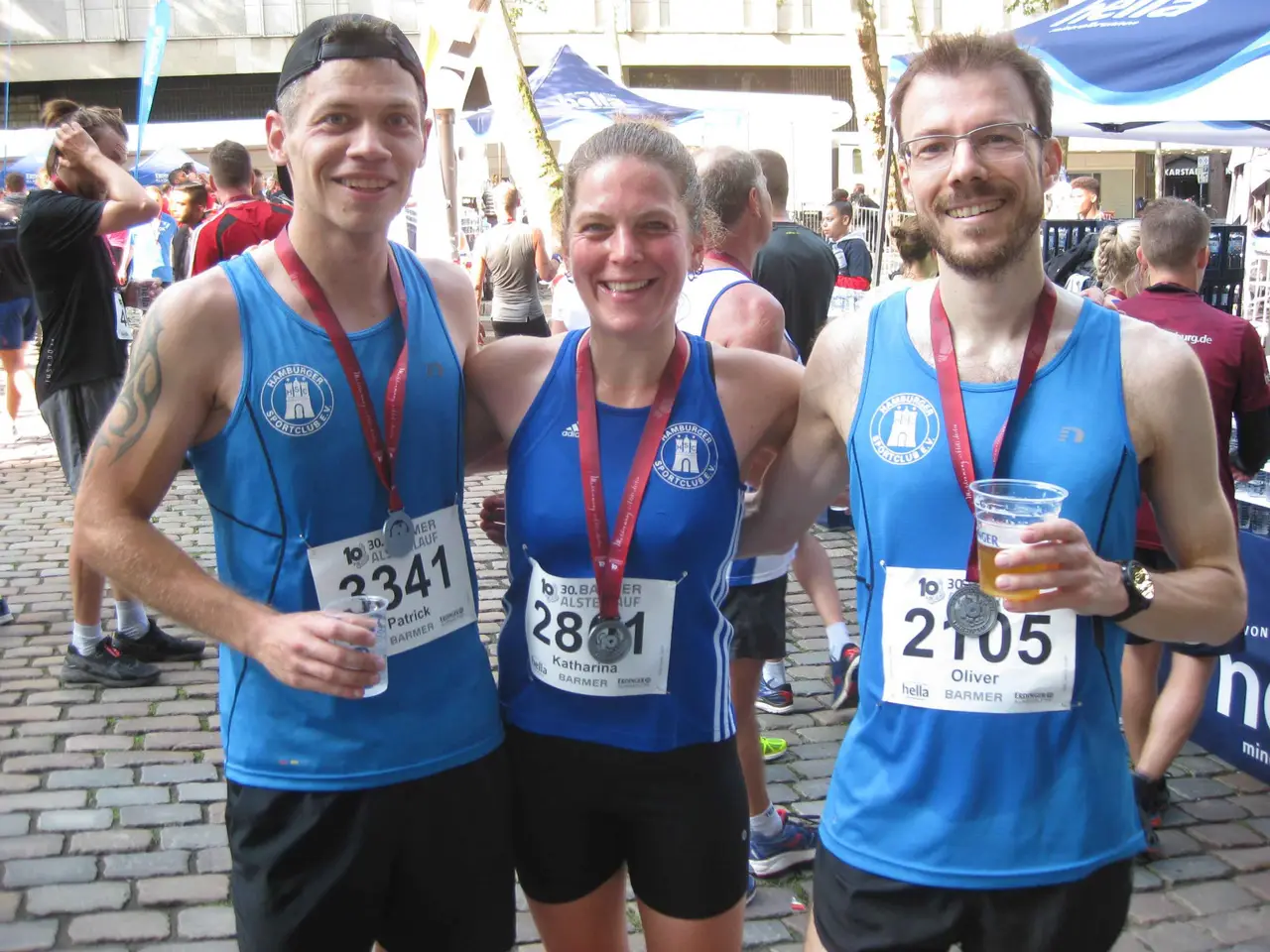 Nicht nur wir vom Hamburger Sportclub sind mit mehren Personen vertreten. Auch viele andere Vereine und Laufgruppen stehen in größeren Gruppen im Startbereich. Es hat trotz der Menge etwas Familiäres. Man kennt sich und es lenkt von der Aufregung vor dem Start ab noch hier und da zu schnacken.