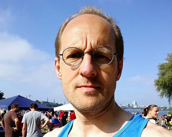 Vor zwei Jahren nahm ich zum ersten Mal am St. Pauli-Lauf gegen Rechts teil. Damals noch als Helfershelfer und Abschirmdienst für Wiebke, die die Frauenwertung gewann. Der Einsatz hatte sich also gelohnt und ganz nebenbei sprang für mich noch der erste Platz in meiner Altersklasse heraus. Obwohl Zeiten beim Lauf gegen Rechts nicht so wichtig sind, hier heißt es letztendlich Flagge zeigen gegen Rassismus, Ausländerfeindlichkeit und nationale Tendenzen, die durch Parteien wie die AfD wieder hoffähig gemacht werden. Schön, dass man in Hamburg auch laufend gegen diesen menschenverachtenden Wahnsinn demonstrieren kann. Der Dank geht an dieser Stelle an das Organisationsteam des FC St. Pauli, an alle Teilnehmerinnen und Teilnehmer, sowie an die vielen HelferInnen und an alle ZuschauerInnen. Für mich persönlich war der Lauf eine Durchgangsstation auf dem Weg zum Hella-Halbmarathon am 01.07., für den ich mich zur Zeit vorbereite. Einmal links um die Alster also, und da Start und Ziel etwas versetzt sind, betrug die Streckenlänge circa 7,3 Kilometer. Ich nahm mir vor, ein Tempo knapp unter 4:00 zu laufen, ein Ziel das ich leider mit einem Schnitt von 4:02 knapp verfehlte und mit einer Zeit von 29:28 im Ziel eintraf. In Anbetracht der doch sehr warmen Temperaturen im momentan strahlenden Hamburger Frühjahr, der sich als Sommer entpuppt, bin ich letztendlich mit dieser schnellen Trainingseinheit unter Wettkampfbedingungen sehr zufrieden. Morgens nach dem Aufwachen war der Himmel noch schön mit Wolken bedeckt, doch meine Hoffnung auf einen sonnenfreien Lauf zerschlugen sich kurz nach neun, als ich mich auf den Weg an die Außenalster machte und die Sonne so langsam die Wolkendecke durchbrach. Als ich mich um 10 Uhr bei den sehr schnellen Menschen in der ersten Reihe des ersten Startblocks wiederfand, herrschte also ein Sonnen-Wolken-Mix bei über 20 Grad, super für Sprinter, mir für eine Mitteldistanz schon viel zu warm. Um dem Gedränge bei der scharfen Rechtsabbiegung nach gut 30 Metern zu entgehen, beschleunigte ich mal vom Start weg auf ein vorübergehendes 400-Meter-Temop, um dann relativ schnell in den gewünschten Flow überzugehen. Es befanden sich durchgehend gleichschnelle Läufer in meiner Nähe, und das hilft, das ist immer eine gute Orientierung für mich. Die Wärme bereitete mir im Verlauf des Rennes mehr Kopfschmerzen als meine Form. Der kurze Anstieg an der Kennedy-Brücke tat weh. Mit den Gedanken ist man schon im Ziel, obwohl noch diverse Meter vor einem liegen, aber mit hochsprinten war da nichts mehr. Immerhin auf dem letzte Kilometer noch zwei, drei Starter, die während des gesamten Laufes immer vor mir lagen, überholt und nicht an Spannung verloren. Viel länger hätte die Distanz aber auch nicht sein dürfen, sonst hätte ich das Tempo definitiv nicht halten können, bei einem Durchschnittspuls von 162 und einer Auslastung von angeblich 94 % (ich traue dieser letzten Angabe nicht wirklich). Im Ziel wird man abgescannt und laut der vorliegenden Ergebnisliste habe ich den zweiten Platz in meiner Alterswertung belegt, angeblich um eine Sekunde geschlagen. Das muss der Läufer rechts neben mir im Ziel gewesen sein, der schneller gescannt wurde. Leider tauchen auf der Gesamtergebnisliste noch sehr viele Fantasiezeiten auf, so dass meine Platzierung nicht gesichert ist. Ich werde auf Rang 57 geführt, der offiziell gekürte Sieger auf Platz 27, es bestehen Ungereimtheiten. Meine Form ist also völlig okay, mein Gewicht leider um circa fünf Kilo zu hoch, sprich über 65, das geht gar nicht, aber vielleicht kann ich es noch bis zum Halbmarathonstart am 01.07. wenigstens auf 63 reduzieren. Und dann macht der Hamburger Sommer eine kurze Pause und ich unterbiete dann meine bisherige Halbmarathonbestzeit von 1:29:13. So ist der Plan.