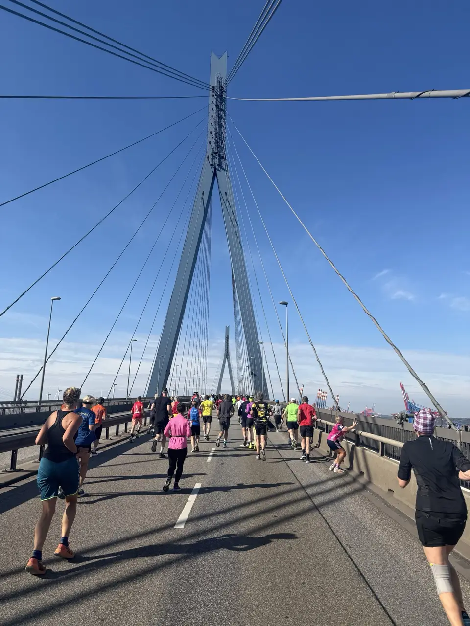 Eine besondere Strecke mit 53 Höhenmetern und schöner Aussicht auf die geliebte Stadt Hamburg, die man sonst nur vom Auto aus genießen kann. Dadurch das man nach der Wende noch einmal über die Brücke laufen darf erinnert das Höhenprofil der Strecke an den Kölner Dom. Ein toller Tag für über 6.400 Sportler:innen und die Teilnehmer:innen des Hamburger Sportclubs – beste Laune, Teamgeist pur und Muskelkater deluxe!