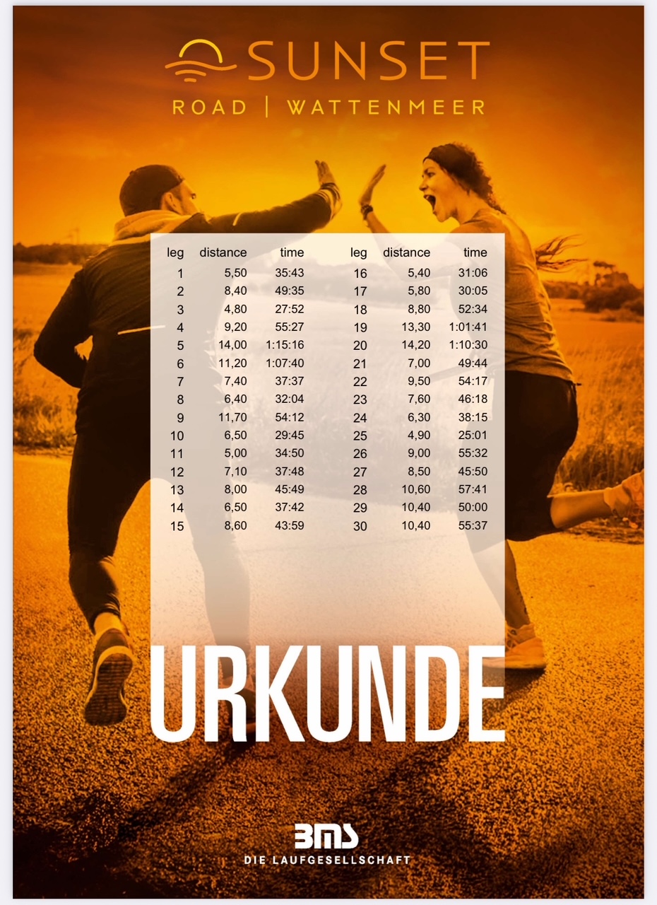 Nach 23 Stunden und 9 Minuten erreichten wir am 31. August schließlich unser Ziel in St. Peter-Ording auf dem 20. Platz von 50 Mixed Teams. Der Moment, gemeinsam über die Ziellinie zu laufen, war ein unvergesslicher Höhepunkt. Erschöpft, aber glücklich genossen wir den Applaus und das Gefühl, diese lange Reise als Team geschafft zu haben.